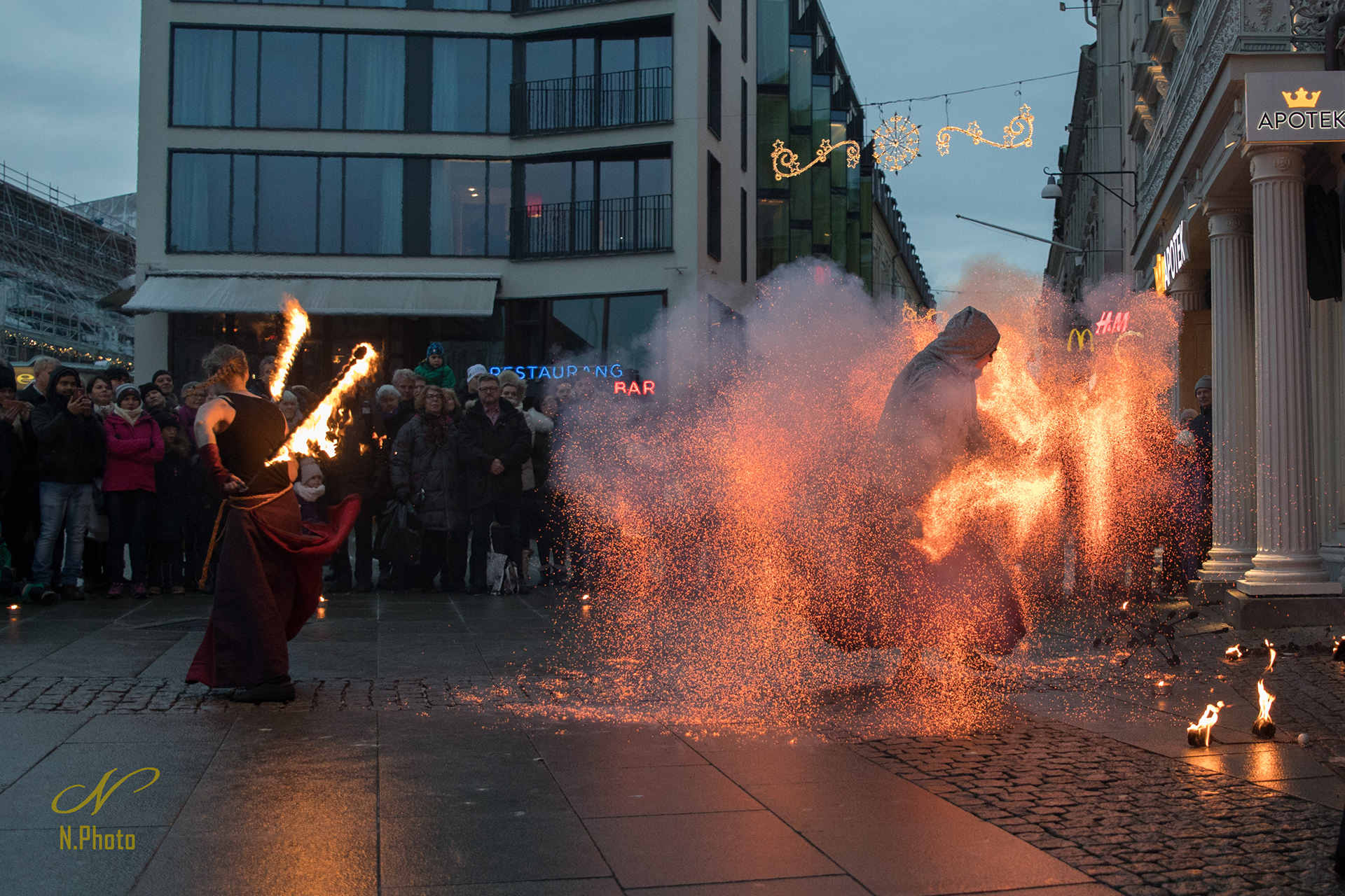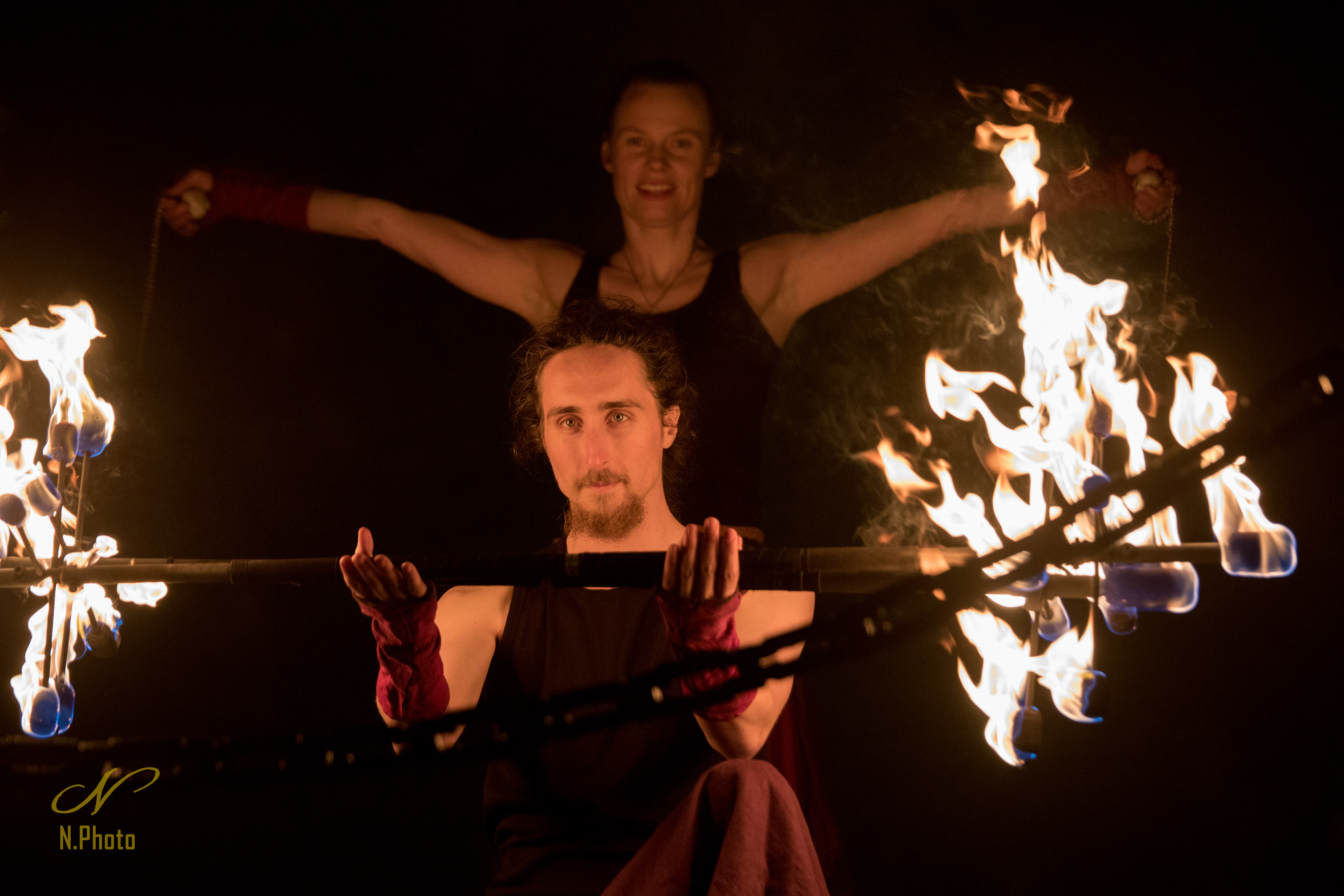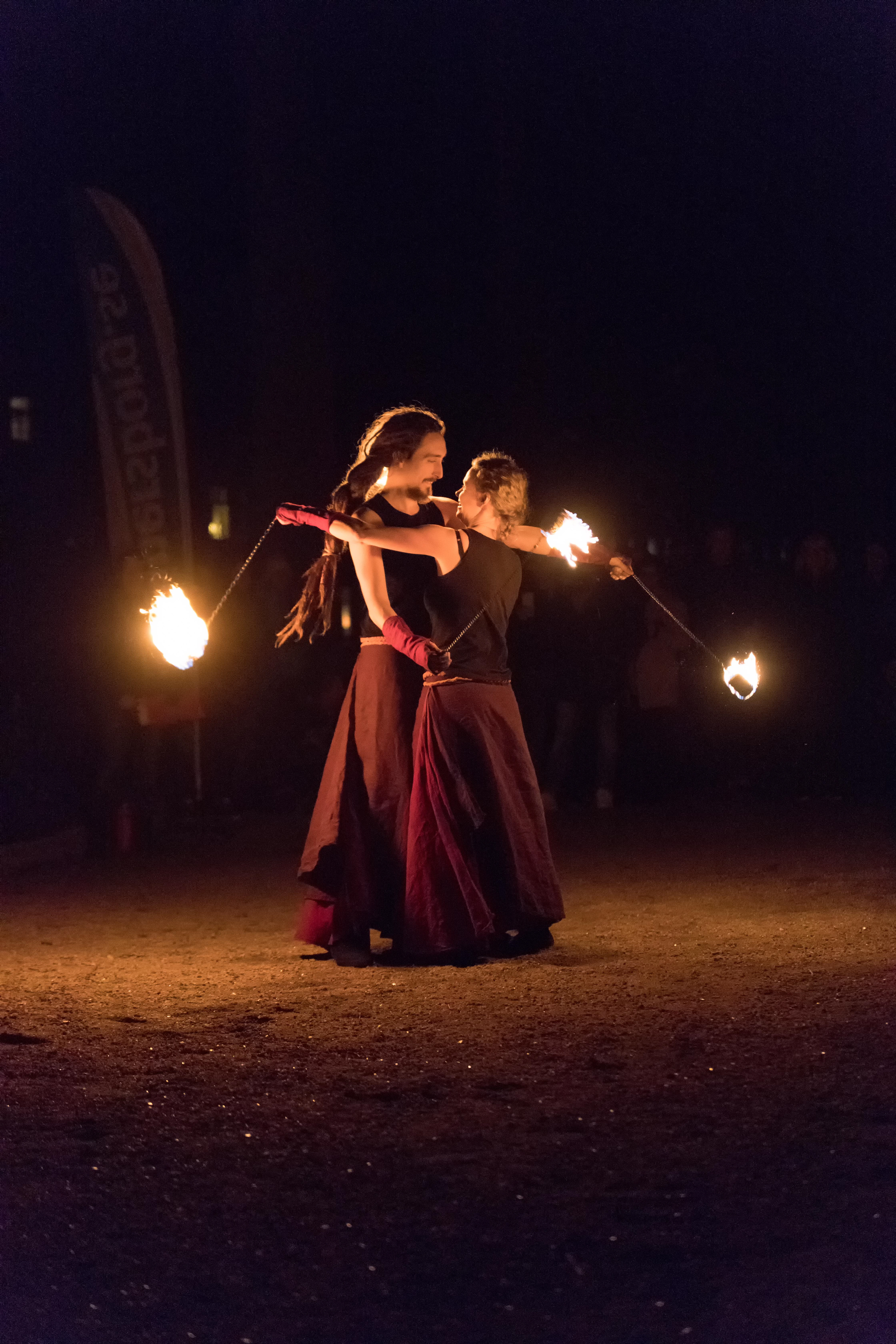 Dynamisk duo som uppträder med magiska eldkonster och elektriska poi.